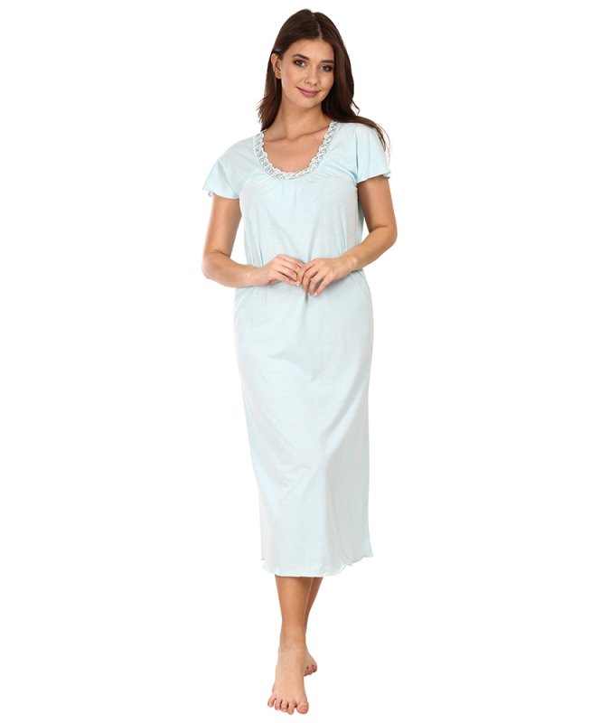 Dlouhá noční košile s krátkým raglánovým rukávem, vsadka.