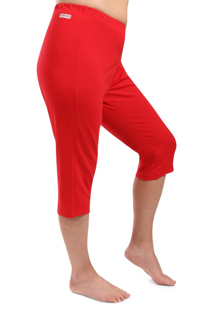 Ušili jsme je z látky, která kombinuje to nejlepší z bavlny a lycry. Legíny jsou proto pohodlné, ale nevytahají se. Kalhoty jsou uplé a jejich délka končí těsně pod koleny. Ve větších velikostech (nad CZ52) mají v pase provlečenou gumu, u menších velikostí je guma všitá. I díky své klasické barvě se dámské kalhoty Gita skvěle hodí k halenkám i tunikám a potěší majitelky každé postavy, i té plnoštíhlé. Umíme je totiž ušít v malých i velkých velikostech – od S až po 4XL a to v bílé či černé barvě.