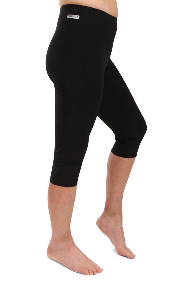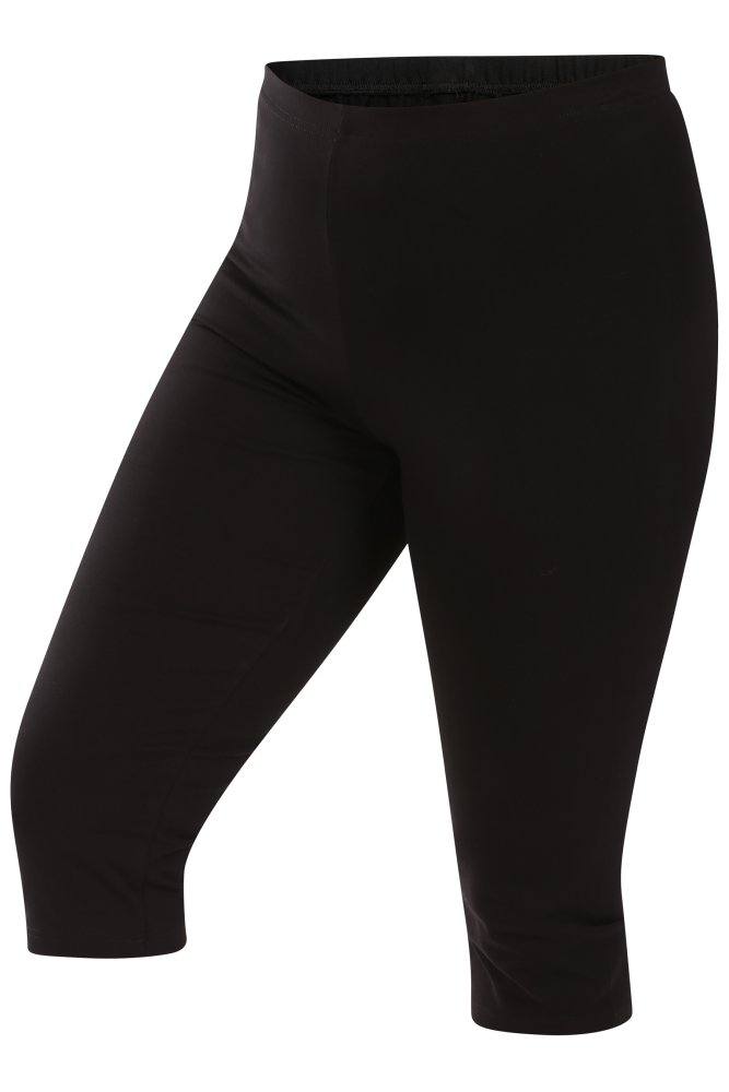 Legíny nabízíme jednobarevné v klasických barvách a využijete je hlavně na volný čas a sport, v kombinaci s halenkami nebo tunikami je můžete obléknout i na formálnější příležitosti. Dostupné velikosti těchto tříčtvrtečních kalhot jsou S (CZ42) až XXXL (CZ60), takže jsou vhodné pro štíhlé i plnoštíhlé dámské postavy.