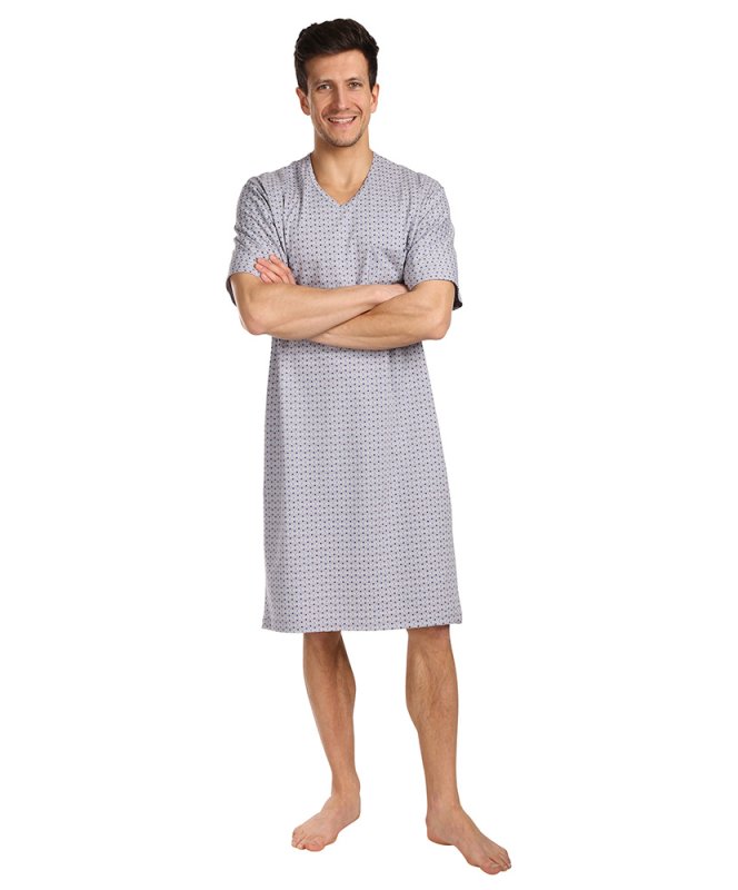 Pohodlí kromě střihu zajistí i materiál, košile je totiž ušitá ze stoprocentní bavlny, která je prodyšná a příjemná na dotek. Má krátké rukávy, výstřih je řešený jako véčko. Na levé straně košile je malá ozdobná kapsička. Za zmínku stojí i fakt, že pánské noční košile umíme ušít i v nadměrných velikostech, takže si na své přijdou i páni XXXL. Mezi nejprodávanější pánské noční košile s krátkým rukávem patří vzor kostka a budík.